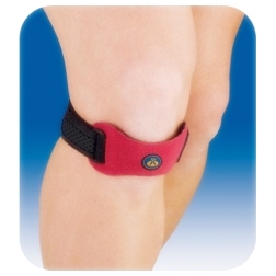 Fabricado em veludo e espuma. Almofada de compressão com silicone e fecho em velcro. Proporciona um suporte infrapatelar, produzindo compressão no tendão do quadricípedes. A almofada de silicone quando em contacto com a pele, produz um efeito anti-deslizante evitando assim que a ortótese possa deslocar-se e cair.